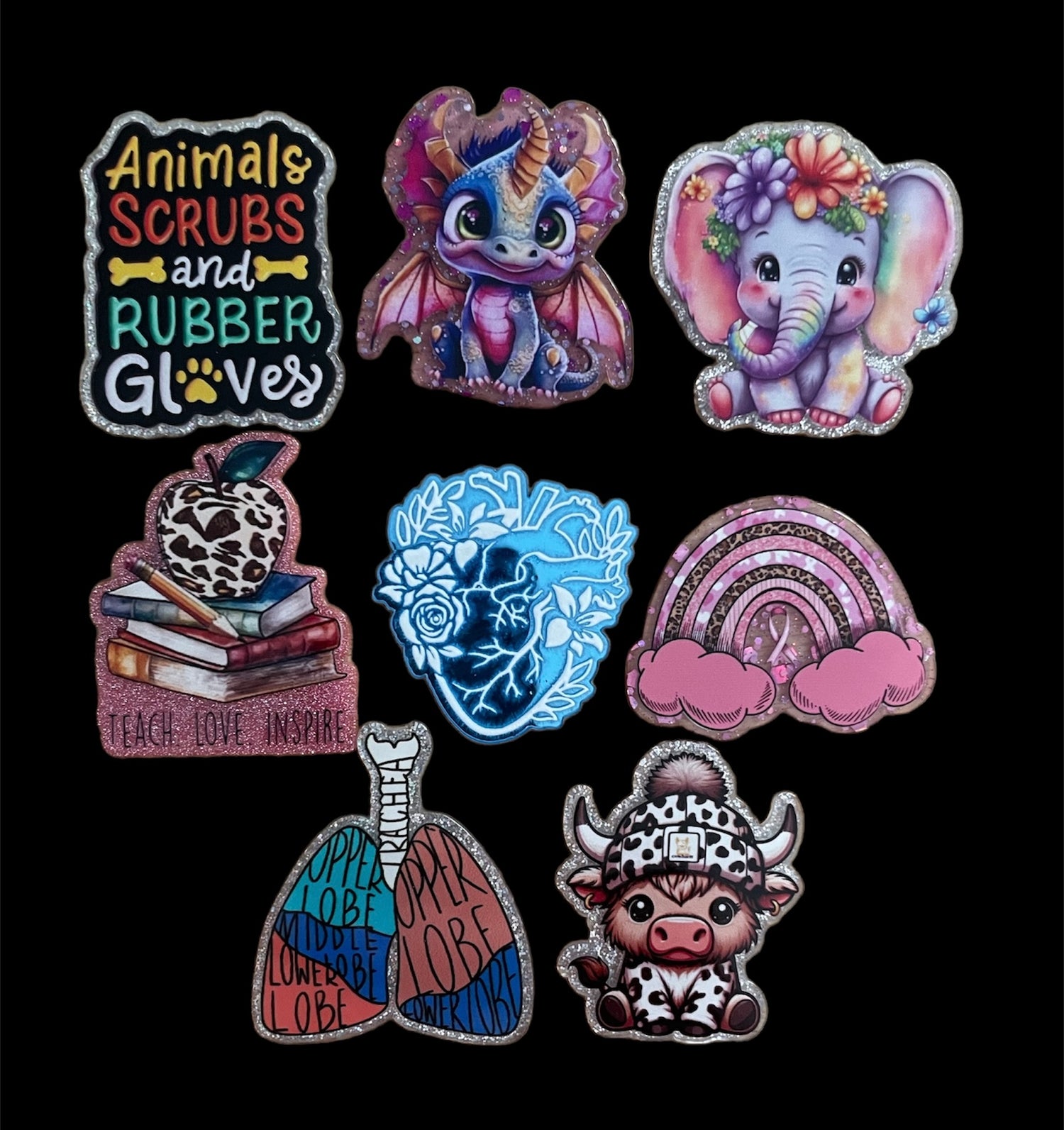 The designs in this section are printed on glitter vinyl or clear vinyl and placed n glow cups.