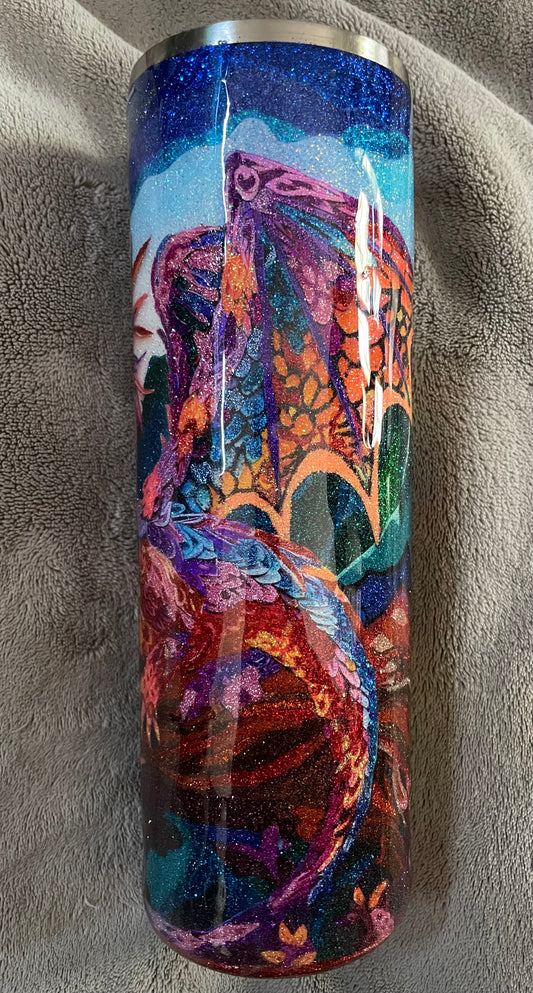 Dolphin Stained Glass Design Glittered Tumbler, 30 Ounce