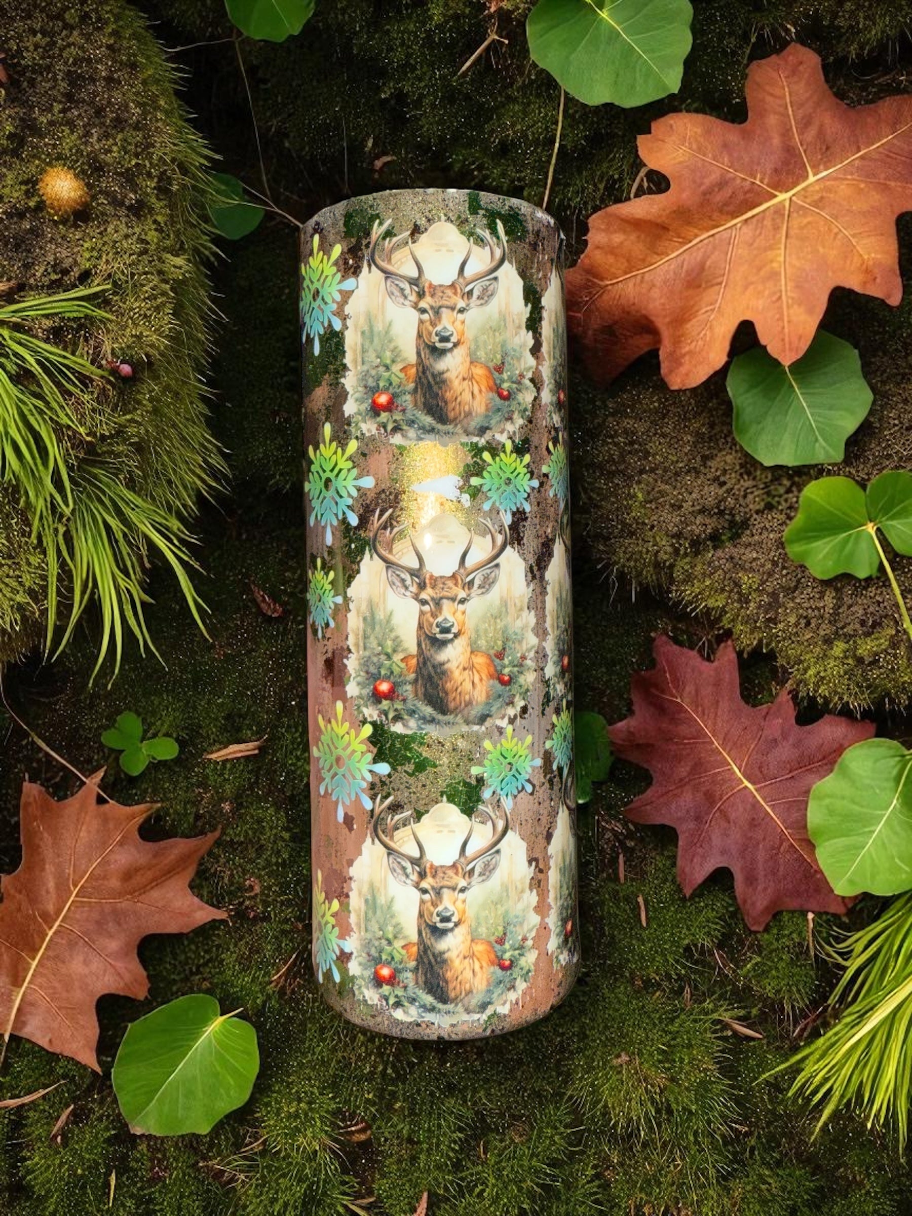 Experience the perfect blend of style and functionality with our 20 ounce deer themed Tumblr. Designed with a camouflage background and crafted with chameleon and flakes, this tumbler makes a great gift for the avid hunter. Order now and enjoy a high-quality product ready to ship.