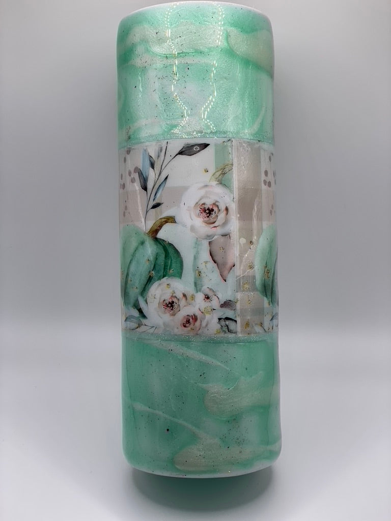 20 Ounce Tri split wiht pumpkin and floral vinyl design