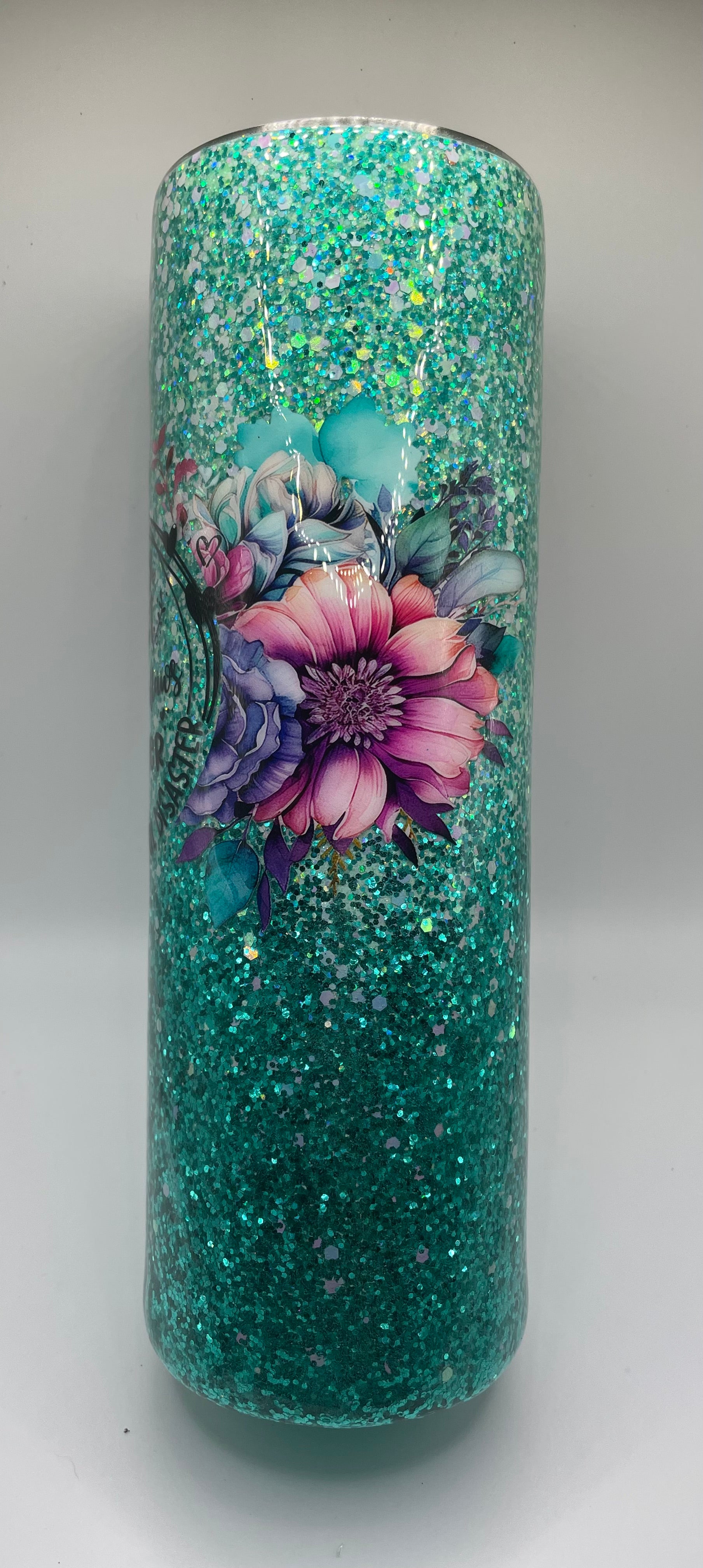 Sip your favorite hot or cold beverage in style with this eye-catching 30 oz tumbler! Featuring a beautiful glittery green base and a stainless steel interior, it's the perfect way to keep your drinks at the perfect temperature. Plus, the quote "Perfectly Imperfect" is sure to inspire you all day long! Ready to ship and great for gifting, your friends and family will love this unique tumbler! Quote: Im beautifully broken, perfectly imperfect, beautiful in my flaws, I'm a beautiful disaster"