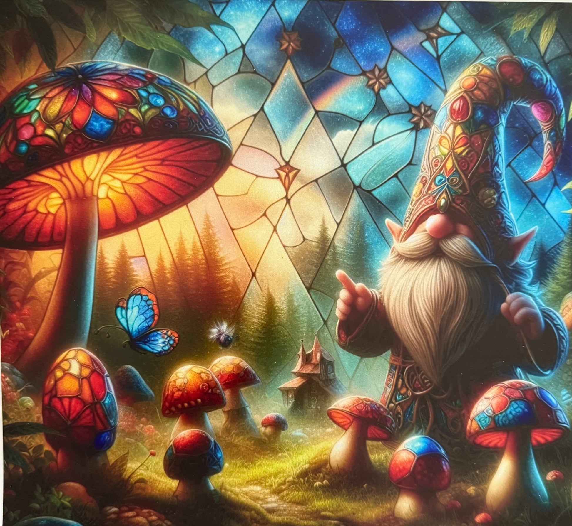 Introducing the 30 Ounce SG Wizard, the perfect Tumblr for any quirky garden gnome enthusiast. With a hand-glittered stained glass design featuring colorful mushrooms, this stainless steel Tumblr makes for a great gift. Order now and elevate your drinking game!