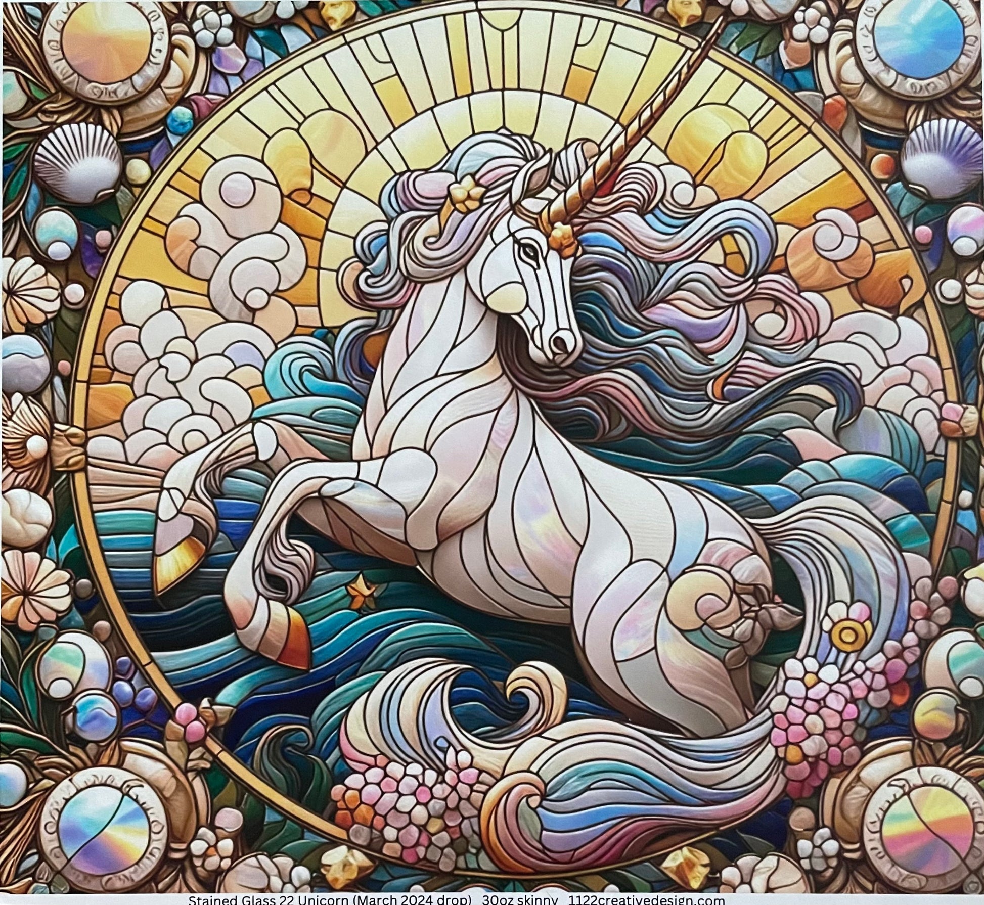 Stay hydrated in style with our 30 ounce, double stainless steel tumbler featuring handmade designs in glittered vinyl and stained glass. Perfect for on-the-go sipping or as a unique gift. Order now and add a splash of color to your day with our unicorn-inspired tumbler.