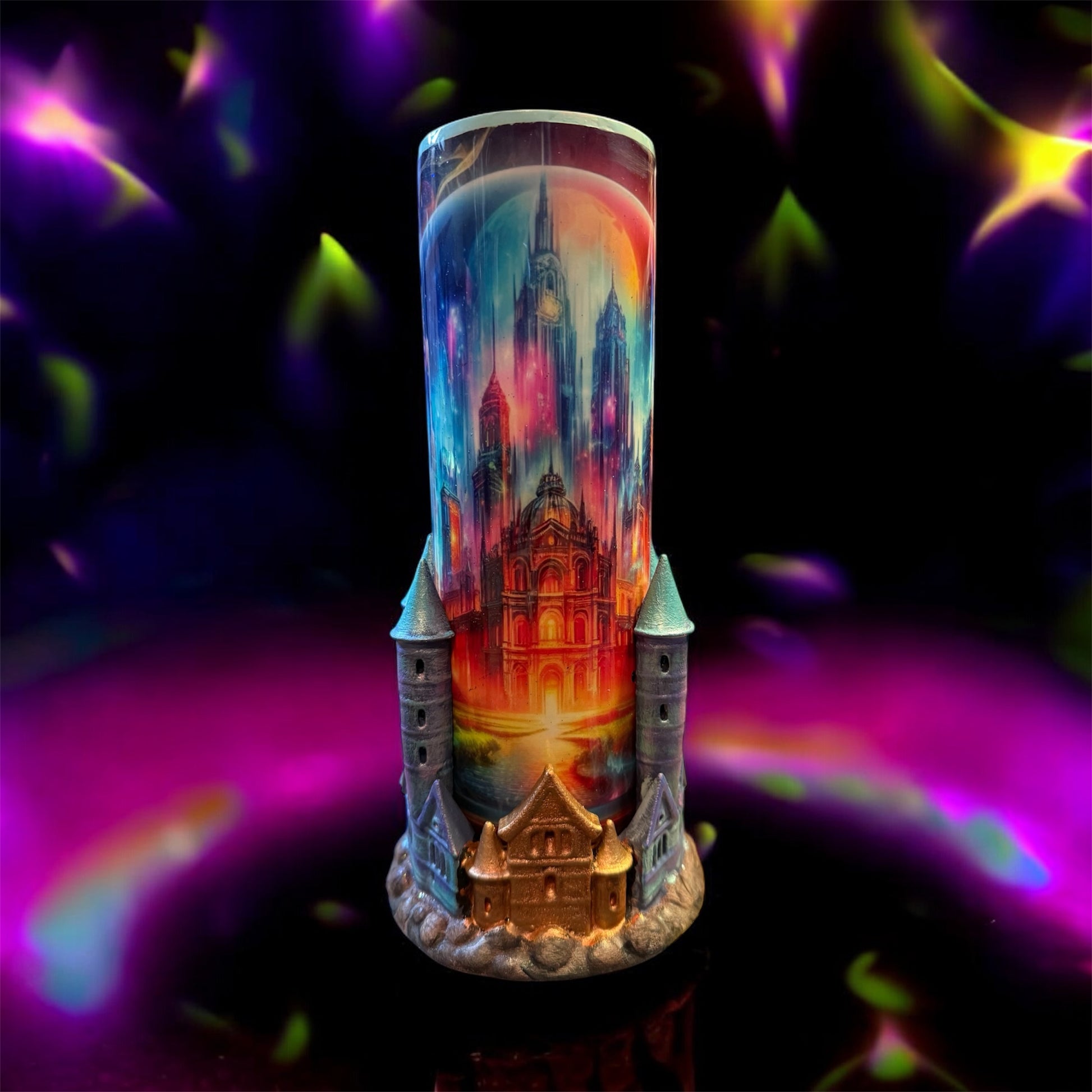 Get ready for a whimsical adventure with our 30oz 3D Fantasy Castle! Hand-painted with intricate details on a vinyl base, this futuristic castle is the perfect gift for any fantasy lover. Order now and bring a touch of magic into your home.