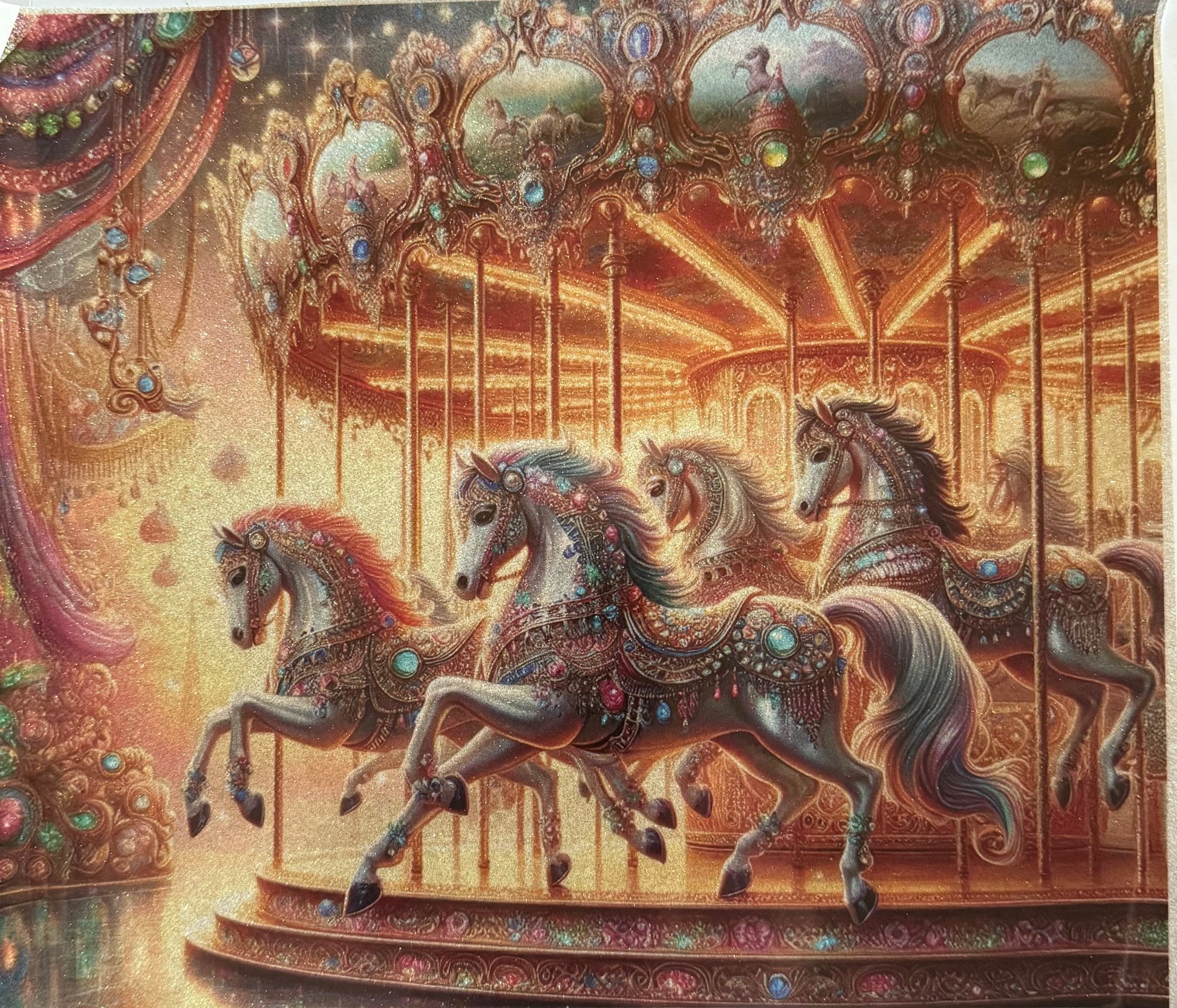 Introducing the 40 Ounce Carousel Hydro Tumblr! Relive cherished memories with its old-fashioned carousel and horses design on sparkling glitter vinyl. Stay hydrated on-the-go with its 40 ounce capacity. The perfect gift for nostalgia lovers. Order now and enjoy those sparkling past moments in style.