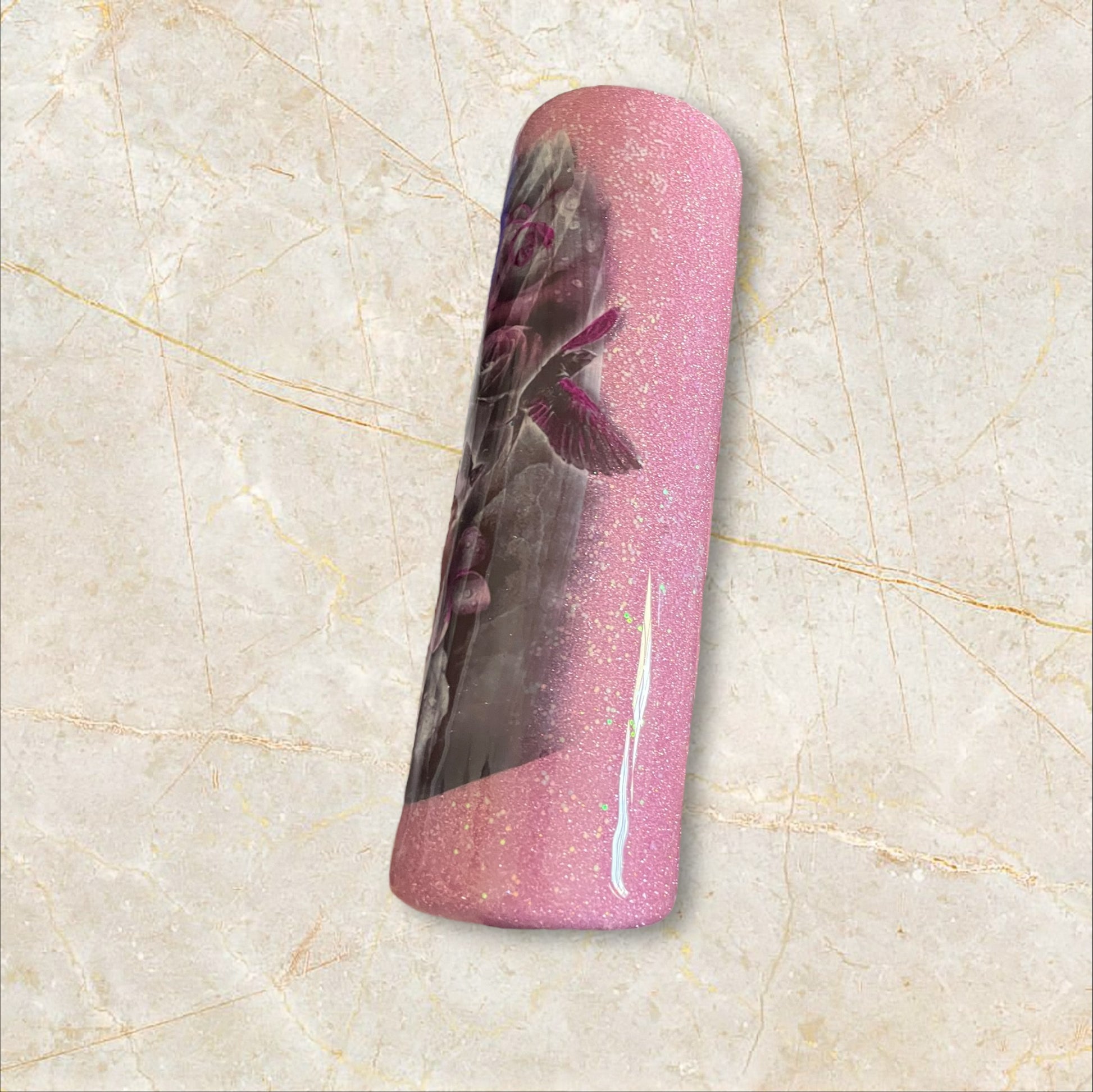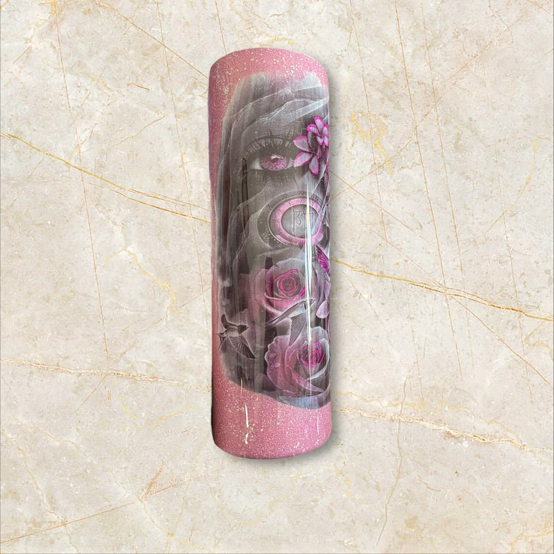#77. Pink glitter, pink floral, eyes roses, birds tattoo
