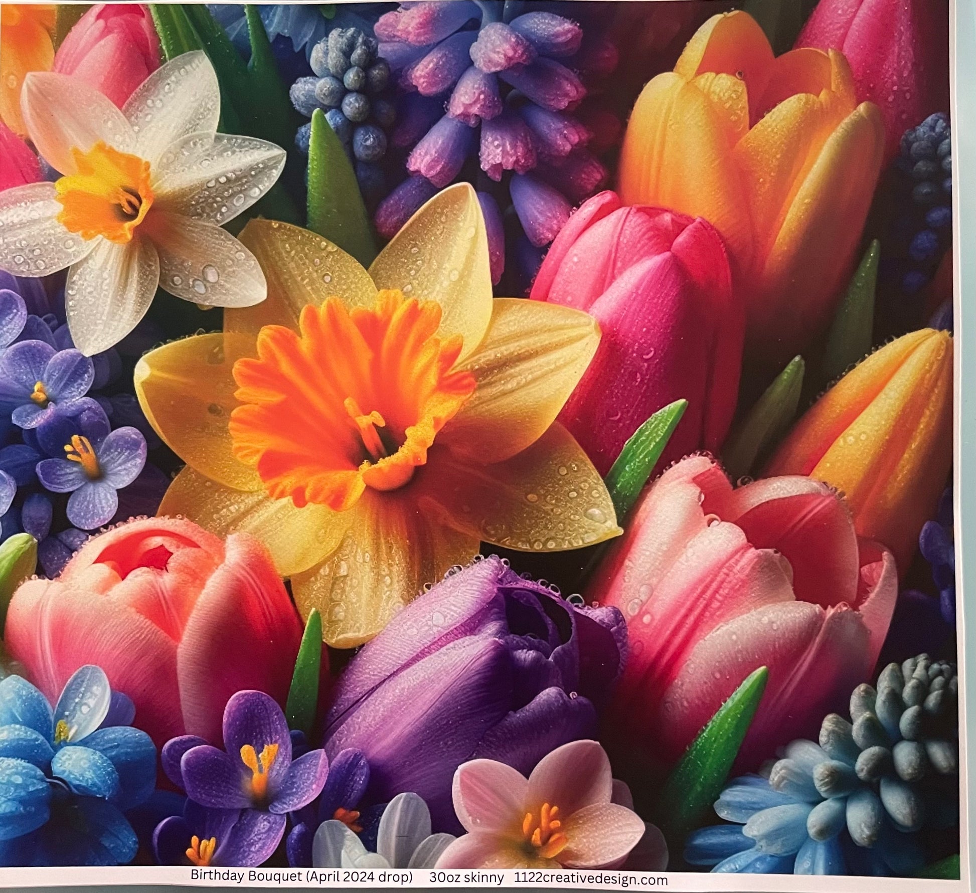 Celebrate in style with our Birthday Bouquet 30 oz tumbler! Featuring colorful flower bouquets and a hand glittered vinyl design, this stainless steel tumbler will make a great gift (or keep it for yourself!) Get yours now and add some stained glass charm to every sip.