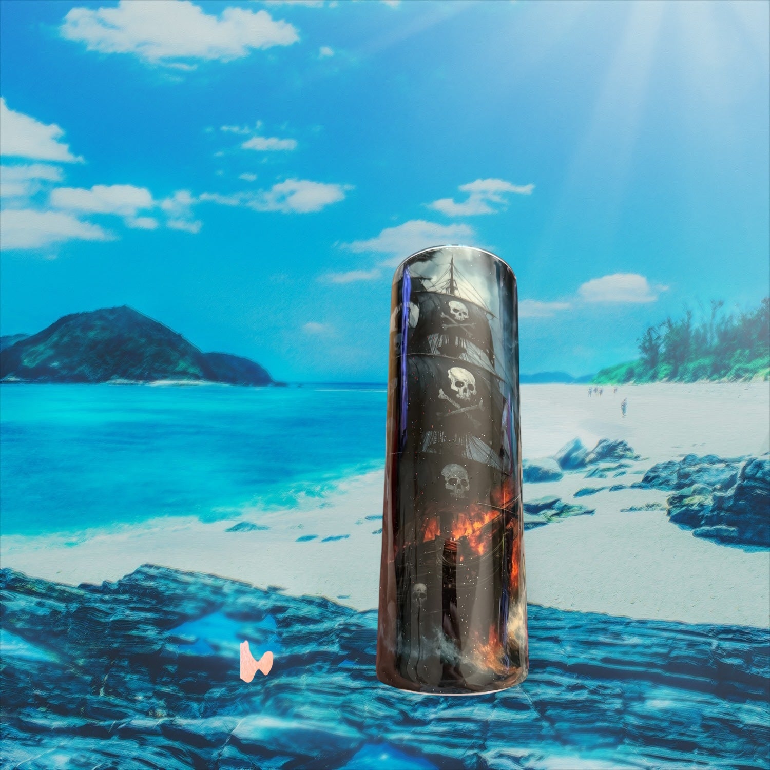 Ahoy, mateys! Quench your thirst with the Pirate Sip 30 Ounce Tumblr. Sail through rough seas with this stainless steel cup that glows in the dark, featuring a fierce pirate ship, skull and crossbones, and lightning. Don’t be afraid to set the night on fire with this playful and practical treasure. Arrr!
