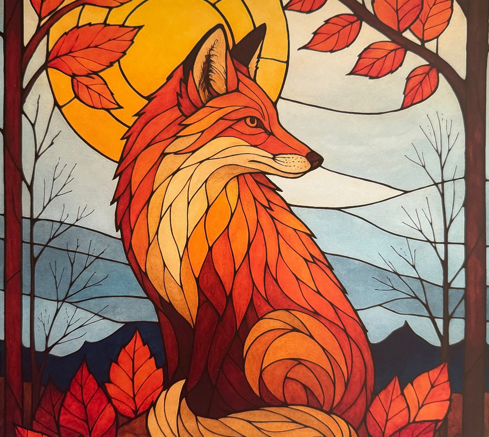 "Add some playful flair to your fall vibes with the SG Fall Fox Tumblr, featuring a hand-glittered stained glass design of a fox, blue sky, fog leaves, and autumn accents. Perfect for your favorite hot or cold beverages, this 30 ounce Tumblr makes a great gift for yourself or a loved one. Order now!"