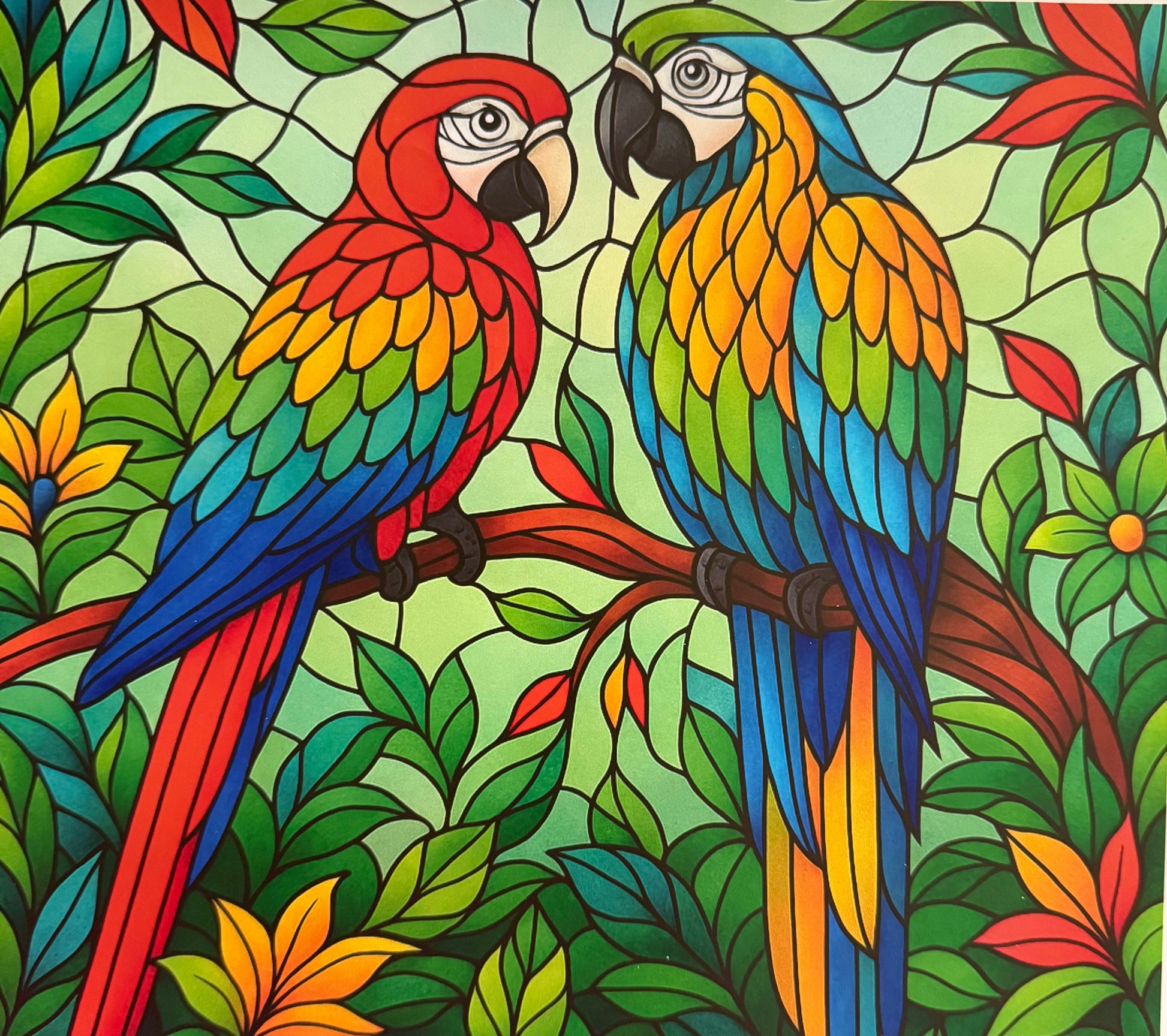 Introducing SG Jungles Mates - the perfect gift for parrot lovers. This 30 ounce hand-painted mug features a glitter design of two playful macaws perched on a lush green tree. Add a touch of nature to your daily routine with this beautiful mug. Order yours now and bring the jungle into your home.