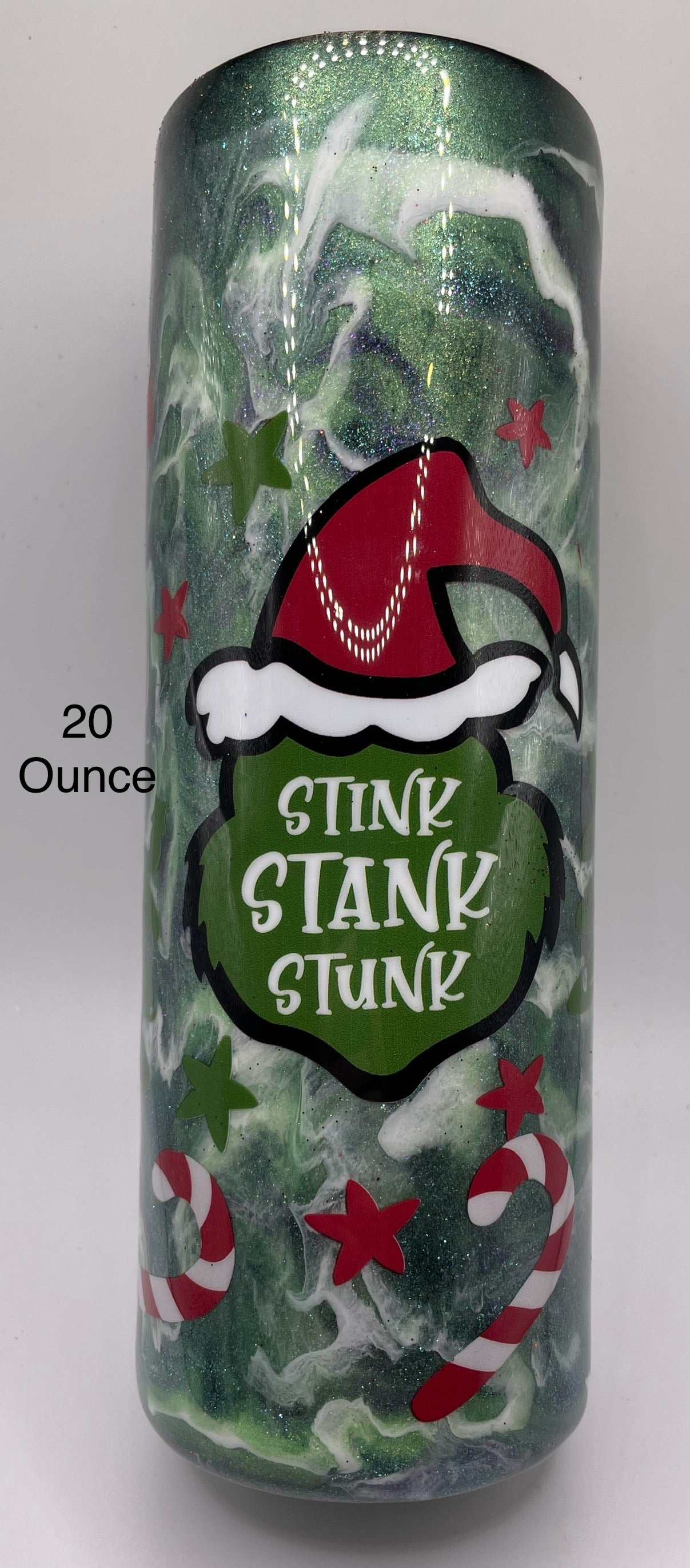 Delight your holiday guests with this 20oz Stink Stank Stunk tumbler! Showcasing a vibrant green backdrop and classic holiday sayings like candy canes and Christmas trees - it's the perfect gift for any season! Ready to ship-order now and get your festive on!!