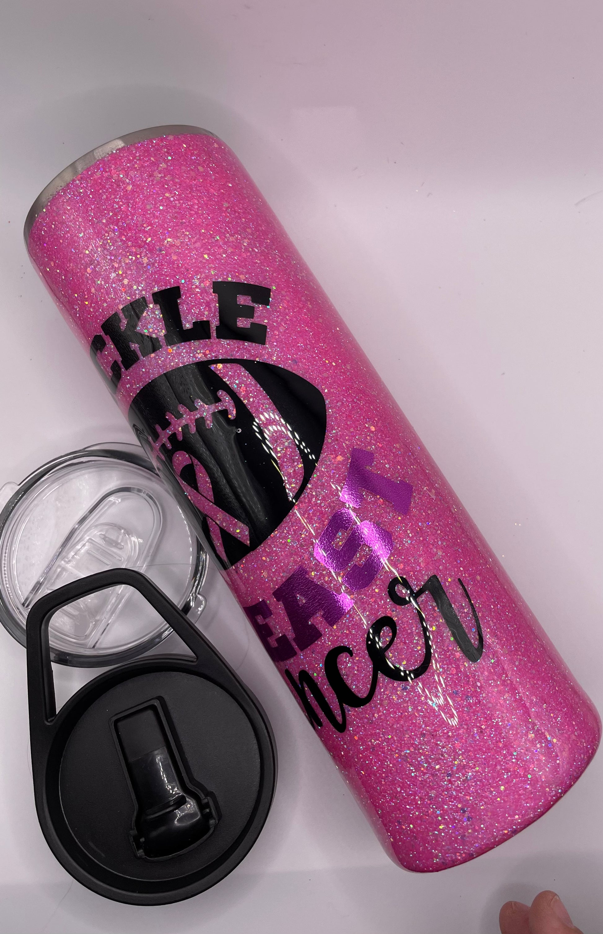 Show your support for breast cancer awareness with the Tackle Breast Cancer Tumbler. This 30 ounce double wall tumbler is crafted with a duo lid and is adorned with a football and a pink ribbon, making it ideal as a gift or for personalization. Ready to ship, it's a great way to make a difference.